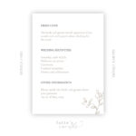 Eleganta kāzu ielūguma detaļu kartīte ar rokām zīmētu ziedu zaru skices elementu un pieskaņotā stilistikā veidotu dizainu gaiši brūnā un pelēkā tonī.