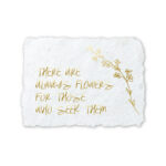 Kartīte ir dabīgi baltā krāsā, uzraksts "There are always flowers" pieejams zelta tonī. Malas raupji plēstas. Izmanto kā galda karti (otrā puse kartiņai atstāta tukša šim nolūkam), kā dāvanu kāzu viesiem vai vienkārši kā mīļu kartiņu tuvam draugam. Papildus kartītei nāk klāt caurspīdīga aploksne atbilstošā izmērā, kā arī lietošanas instrukcija latviešu vai angļu valodā (atkarībā no izvēlētā teksta uz kartītes).