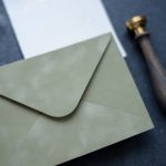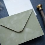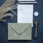 Eleganta gaiša olīvu zaļa samta aploksne rotaļīgi ietērps tavu izvēlēto apsveikuma kartiņu, zīmīti vai vēstuli, lai to droši un skaisti vari nogādāt pie saņēmēja.