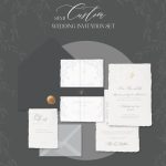 Ielūgumu iespējams papildināt ar pieskaņotas stilistikas- detaļu kartīti, aploksni, RSVP, ēdienkarti, vietu kartēm u.c.