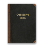 Klade ar zelta folijā iespiestu tekstu ''Obsessive lists''. Krāsa ekrānā var nedaudz atšķirties.