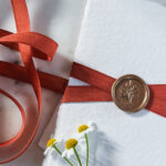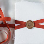 Rekomendējam vienai 10x15cm ielūguma kartītei 35cm garuma lentīti (bez siešanas, tikai salikšanai krustā ar zīmoglakas nospiedumu pa virsu) vai 70cm lentīti (siešanai ar pušķīti).