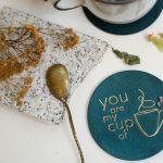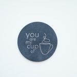 Ādas krūžu / glāžu paliktnis ar reljefspiedē iestrādātu tekstu "You are my cup of tea".