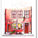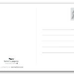 Pastkarte ar Lotte's Papery darbnīcu Jāņa ielā 12. Pastkartes otra puse ir tukša, lai vari uzrakstīt vēlamo tekstu, adresi un uzlīmēt pastmarku, kas nodrošinās tavas kartītes veiksmīgu aizceļošanu līdz adresātam.