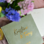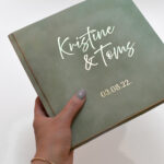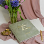 Viesu grāmata elegantos samta papīra vākos, kuru personalizēsim ar jaunā pāra vārdiem kaligrāfiskā fontā un nozīmīgo datumu, kā tas redzams paraugā, zeltā vai sudrabā. Akurāts un rūpīgs roku darbs ar elegantu un karalisku noskaņu - perfekti papildinās Jūsu kāzas vai īpašo notikumu. Pieskaņo arī laulību vākus vai zvērestu grāmatiņas.