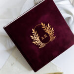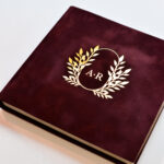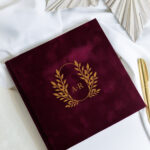 Viesu grāmata elegantos samta papīra vākos, kuru personalizēsim ar ģērboni, kas redzams paraugā, un pāra iniciāļiem zeltā vai sudrabā. Akurāts un rūpīgs roku darbs ar elegantu un karalisku noskaņu - perfekti papildinās Jūsu kāzas vai īpašo notikumu. Pieskaņo arī laulību vākus vai zvērestu grāmatiņas.