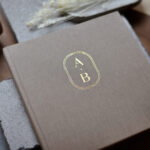 Viesu grāmata no kolekcijas TERRA, kuru raksturo elegants minimālisms, patīkama tekstūra un neuzkrītoši zelta vai sudraba akcenti.