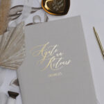 Vienotam dizainam izvēlies viesu grāmatu no mūsu TERRA vai NATURAL kolekcijas un zvērestu grāmatiņas, kas arī apvilktas ar linam līdzīgas faktūras materiālu.