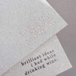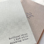 Piezīmju grāmata ir rūpīgs roku darbs kura ir apvilkta ar linam līdzīgas faktūras materiālu, kas to padara īpaši patīkamu taustei. Teksts "brilliant ideas I had while drinking wine" ir iespiests reljefā zelta vai melnā krāsā.