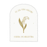 Vienpusēja apsveikuma kartīte ar zelta reljefspiedes elementiem, izgatavota no rokām lieta papīra. Otra puse ir tukša, lai vari uzrakstīt savu vēlējumu.