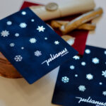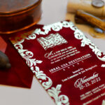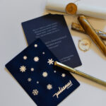 Grezna samta kartīte ar reljefspiedē iespiestu logo — elegants akcents, kas izstaro profesionalitāti un augstvērtīgu dizainu.